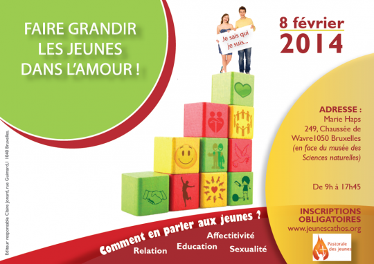 Nous étions cinq liégeois à participer à la formation sur les relations et la sexualité du 8 février dernier organisée par la Liaison Pastorale des Jeunes à Bruxelles. Cette formation qui s’adressait uniquement aux animateurs de jeunes voulait revisiter les fondamentaux de la personne humaine comme être de relation, la place et l’importance de la sexualité dans la vie et l’influence de la société, recevoir un éclairage d’un expert, évoquer la manière dont la sexualité est vécue aujourd’hui, et enfin une approche pastorale ; « comment en parler aux jeunes ?».